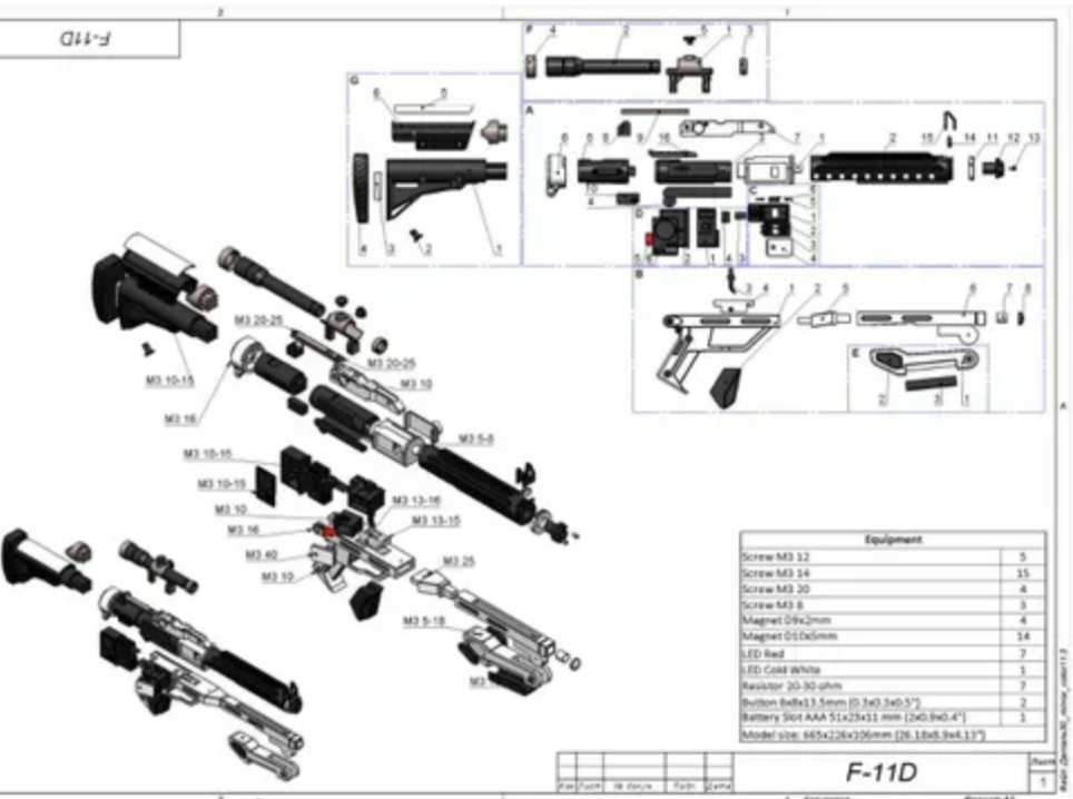 First Order F-11D BLASTER RIFLE - STAR WARS Custom Print - 3D 1:1 printed model